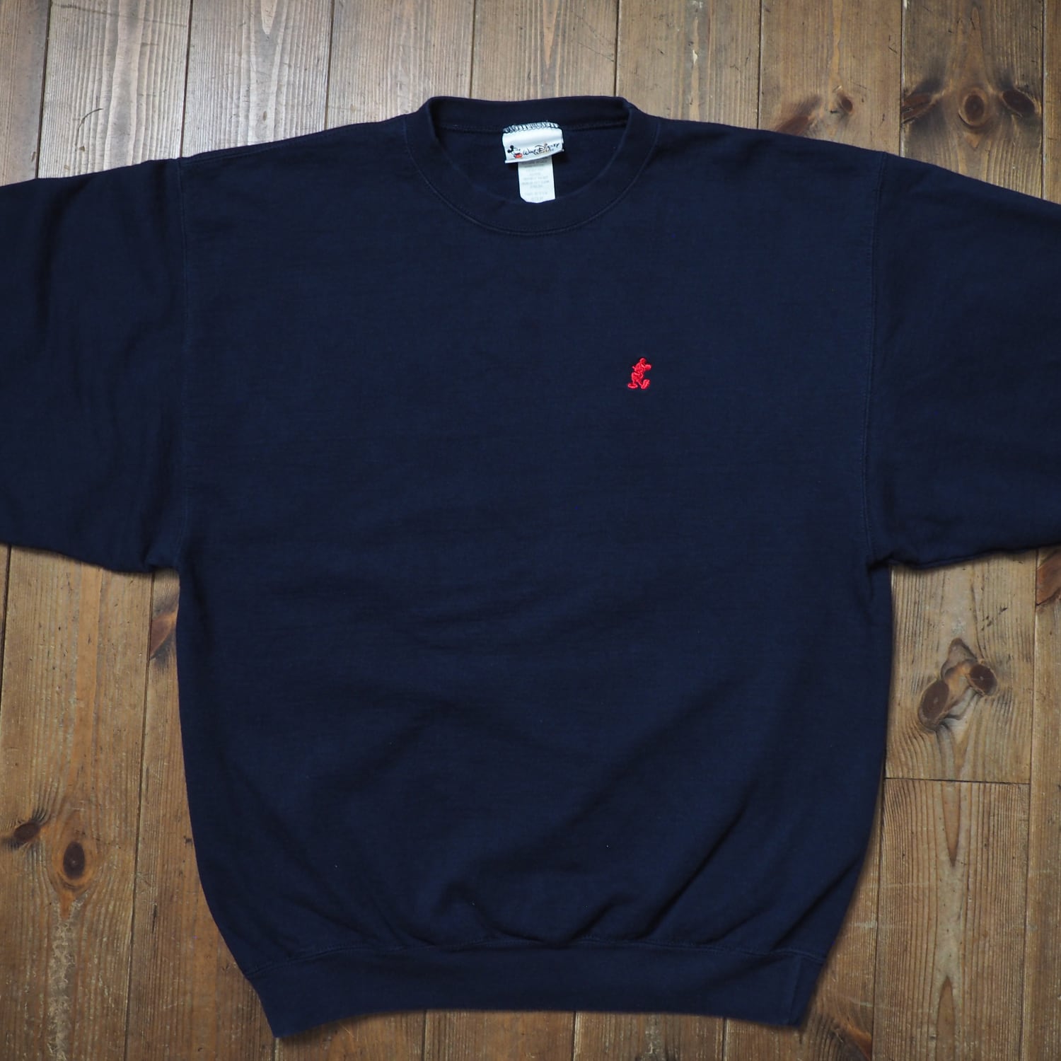 シンプルなネイビーボディに"Polo Ralph Lauren"を想起させる赤のミッキーのワンポイントスウェットです!