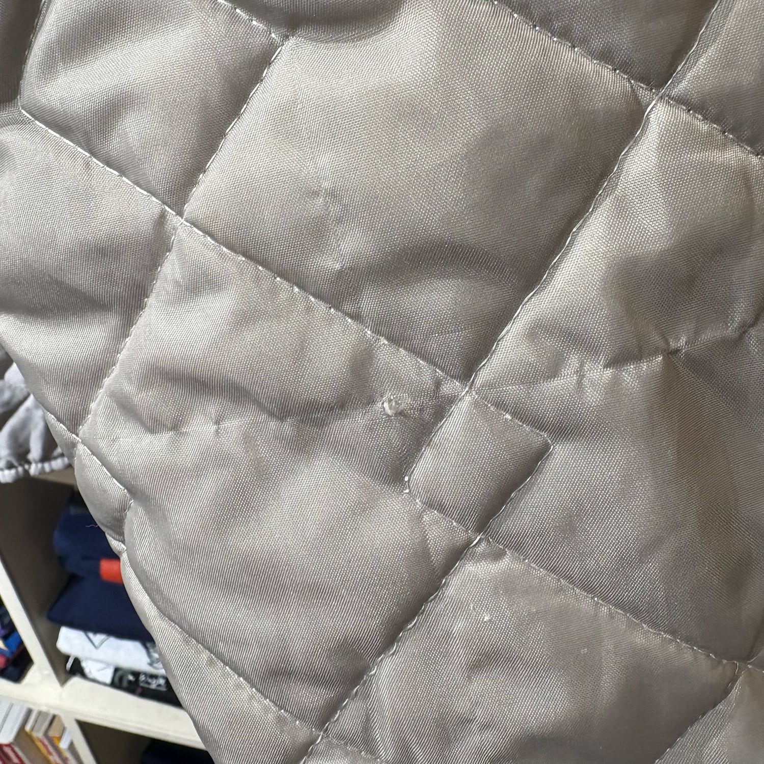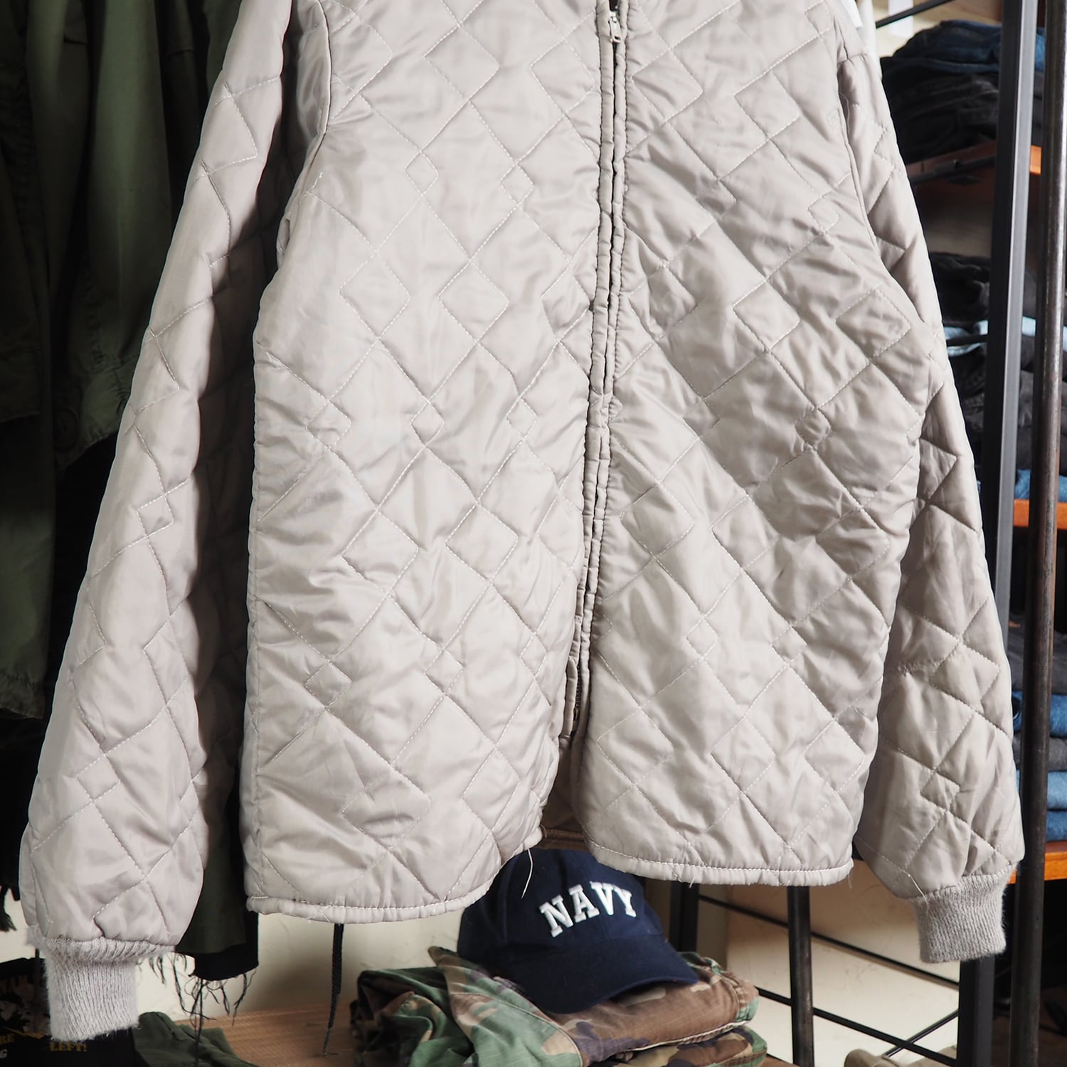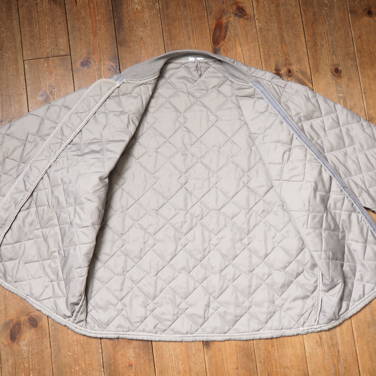 白に近いようなグレーで、キルティングのジャケットは珍しいと思います!