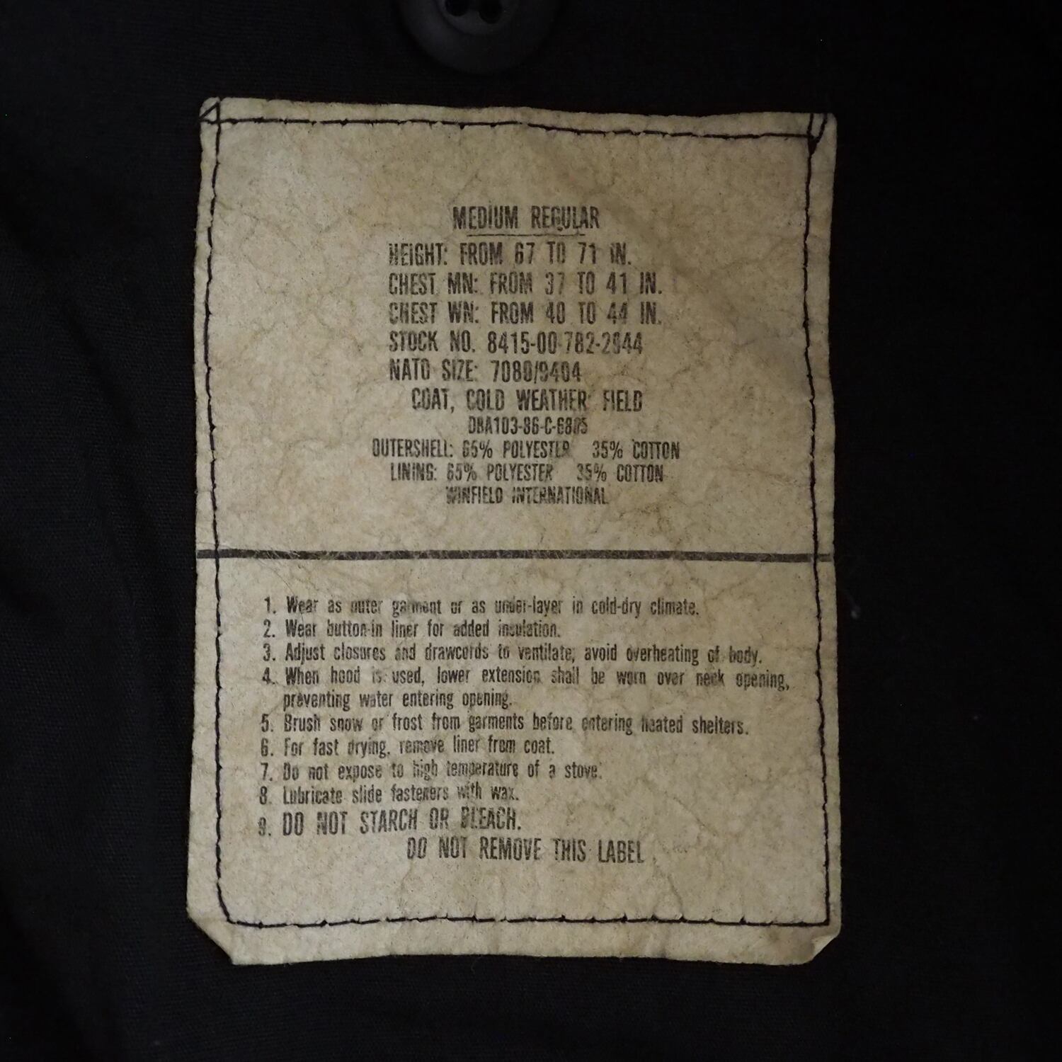 1980年代に製造されたアメリカ軍のM-65