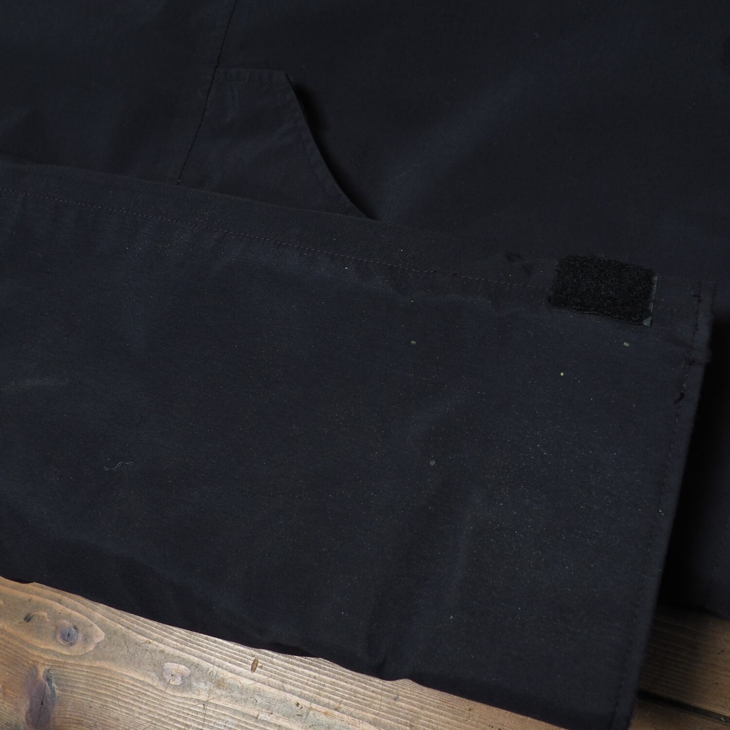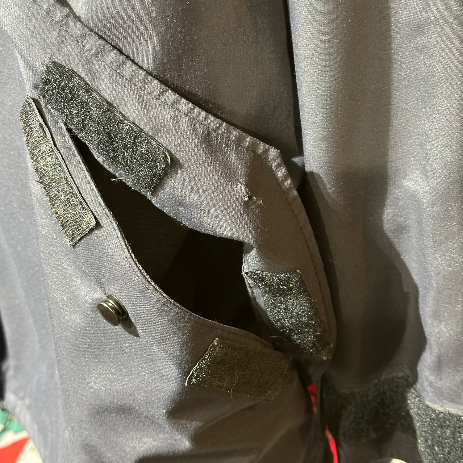 左の下ポケットのスナップボタンが取れています