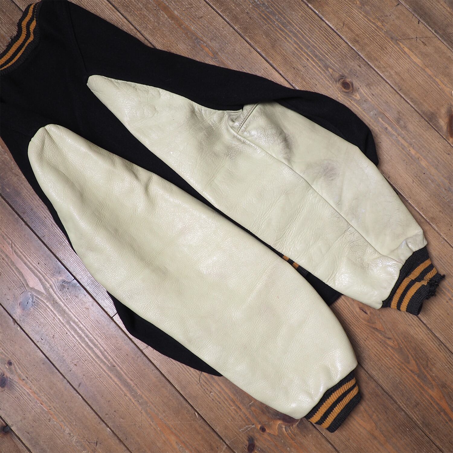 ボディはメルトン 袖はレザーです